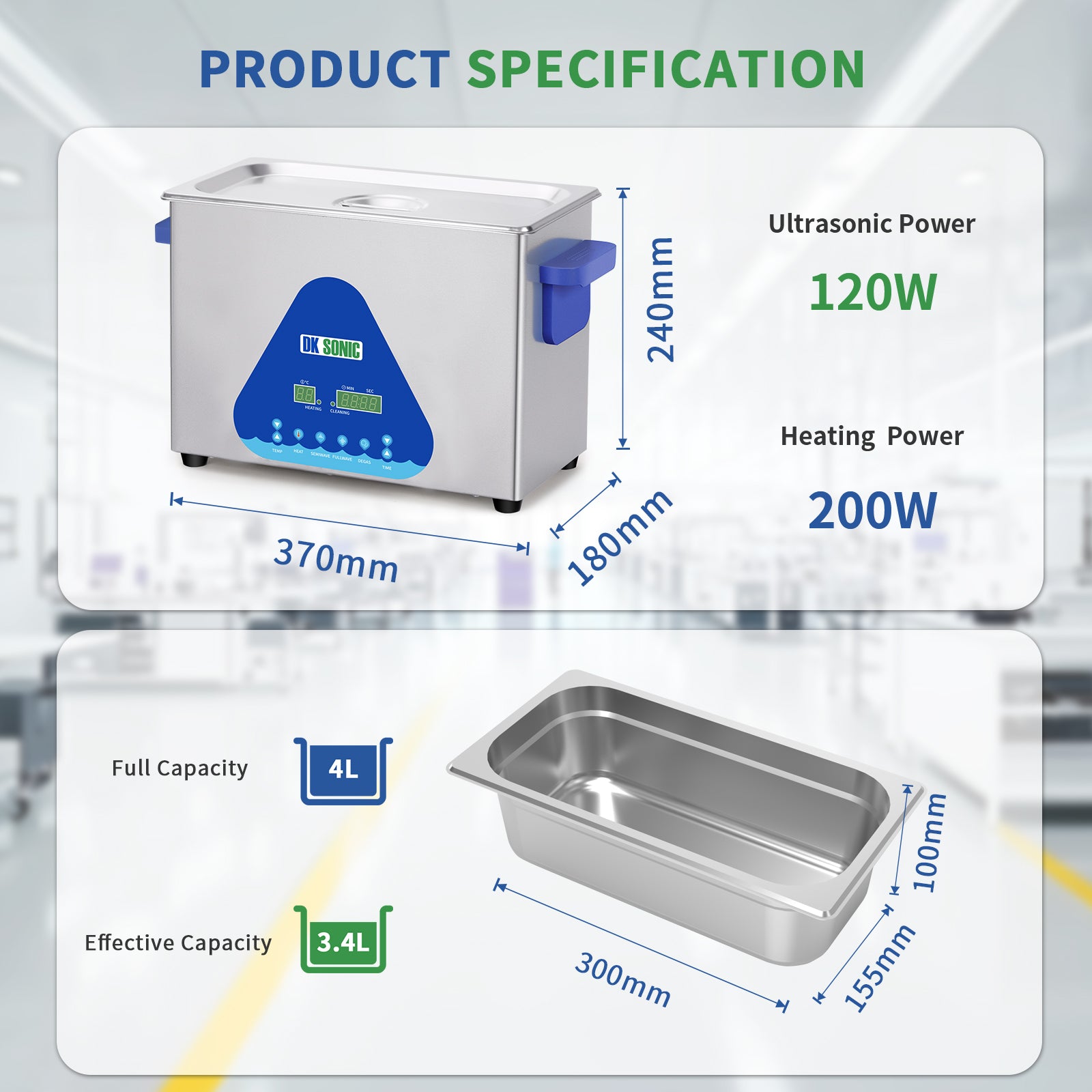 FULLWAVE mode(40KHz) for intensive rinse of blind holes or complicated surfaces; SEMIWAVE mode (semiwave based on 40KHz, i.e. 33KHz) for rough surface cleaning; DEGAS mode for removing ultrasonic fatigue so as to improve cleaning effect