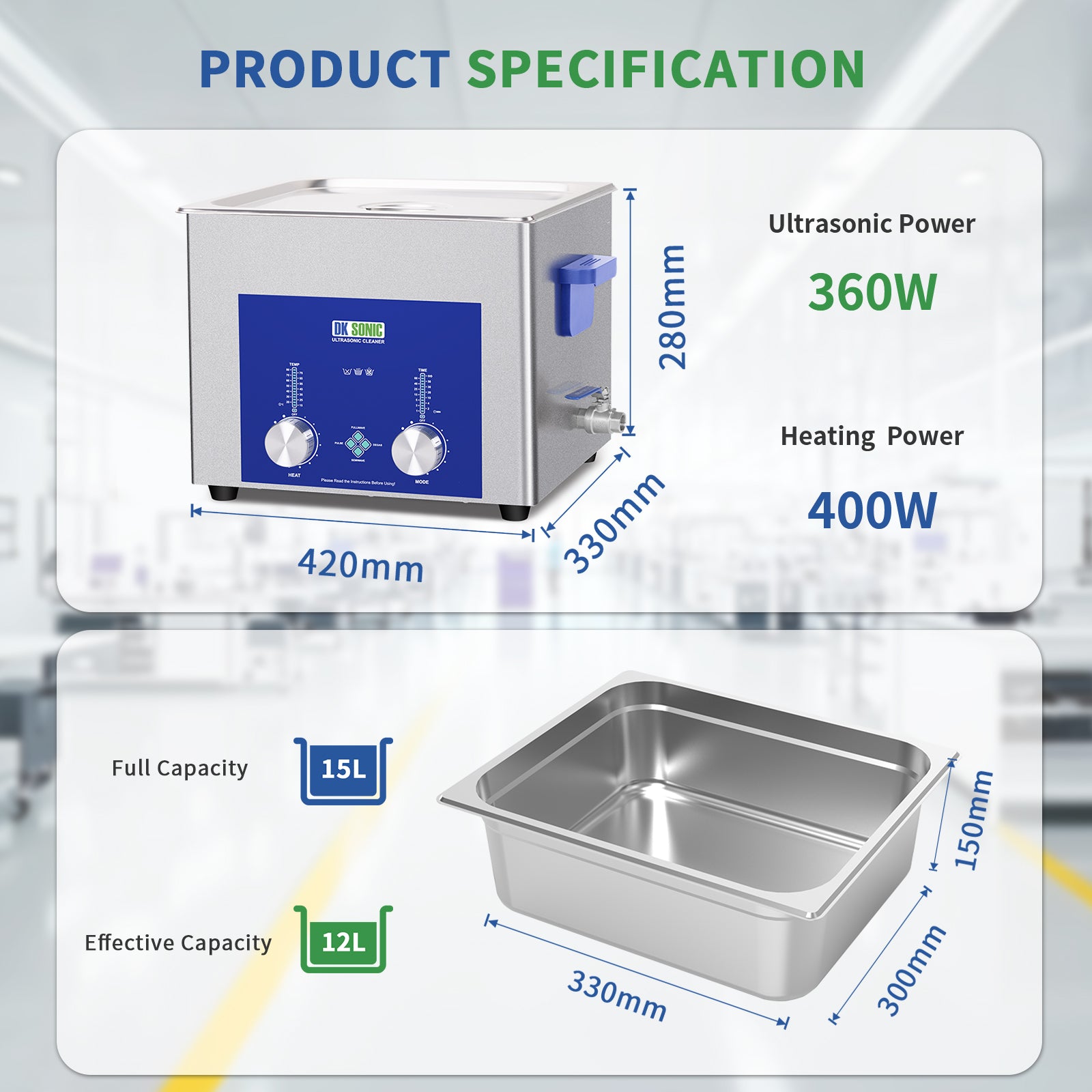 FULLWAVE mode(40KHz) for intensive rinse of blind holes or complicated surfaces; SEMIWAVE mode (semiwave based on 40KHz, i.e. 33KHz) for rough surface cleaning; DEGAS mode for removing ultrasonic fatigue so as to improve cleaning effect; PULSE mode for dynamic rinse of stubborn stains