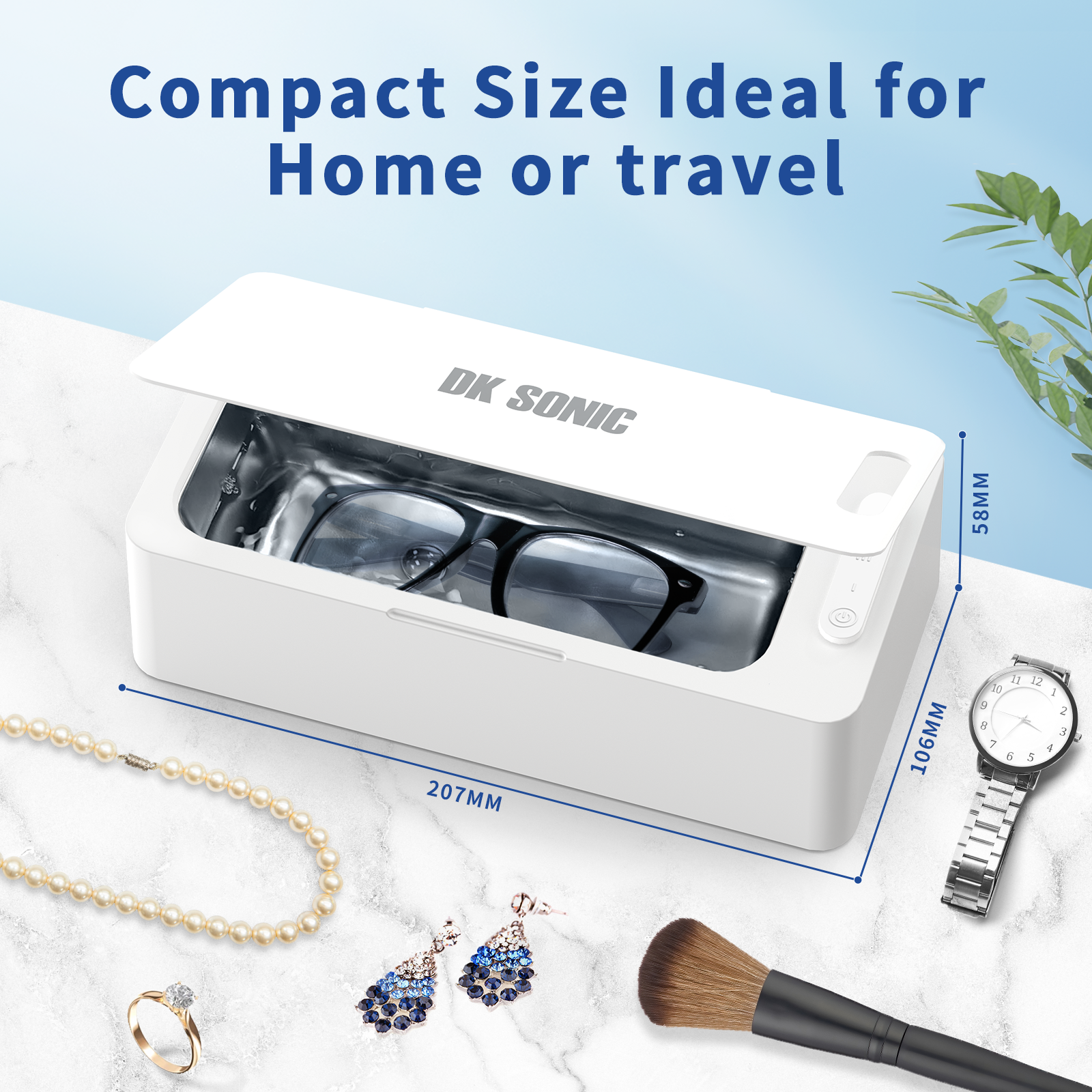 Der Schmuckreiniger ist einfach zu transportieren, wohin Sie auch gehen. Der Schallreiniger wird Ihr Partner auf Reisen.