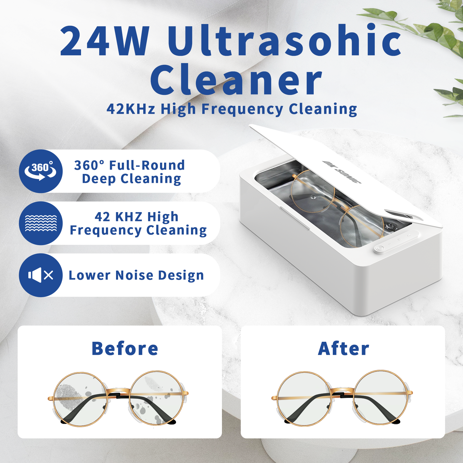 Ultraschall-Schmuckreiniger verwendet hochfrequente Schallwellen von 42000Hz, um Verunreinigungen von jeder Oberfläche zu lösen. Die Ultraschallreinigungsmaschine kann 360° abdecken, um hartnäckigen Schmutz zu entfernen.