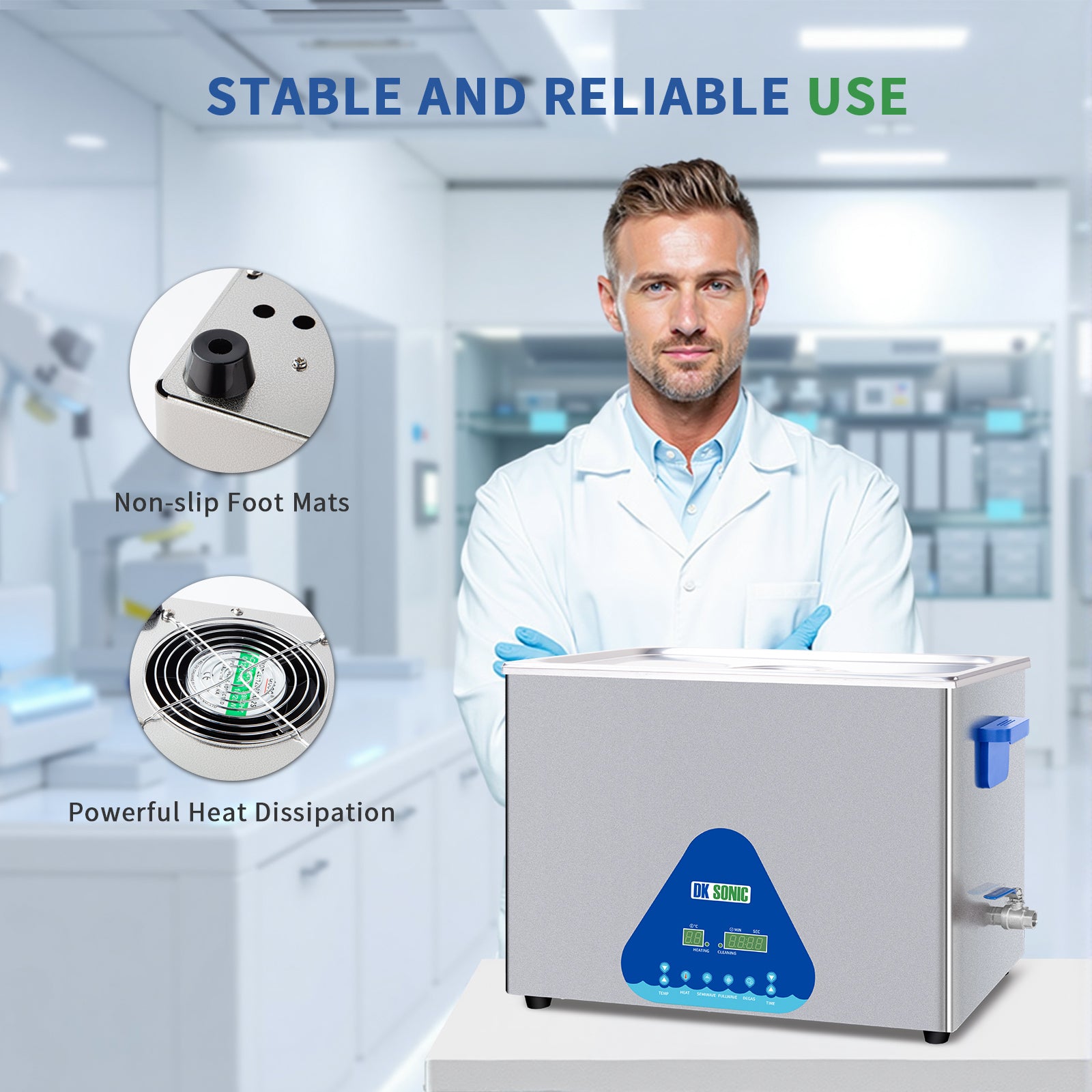 FULLWAVE mode(40KHz) for intensive rinse of blind holes or complicated surfaces; SEMIWAVE mode (semiwave based on 40KHz, i.e. 33KHz) for rough surface cleaning; DEGAS mode for removing ultrasonic fatigue so as to improve cleaning effect