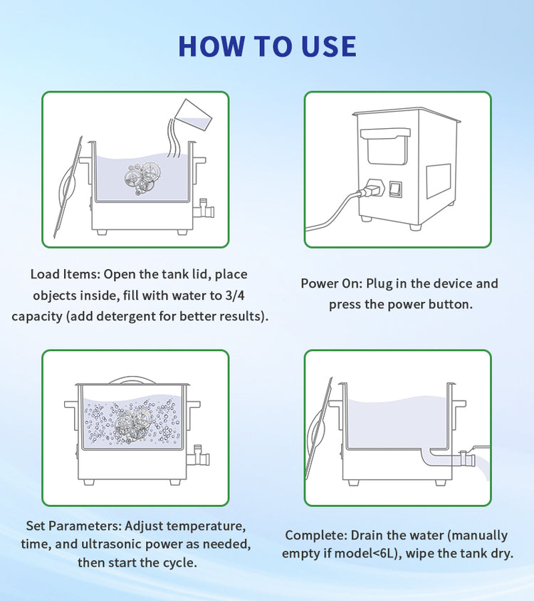 This feature removes dissolved air bubbles from the liquid, ensuring ultrasonic waves penetrate deeply for thorough cleaning. Ideal for delicate items like jewelry or precision parts.