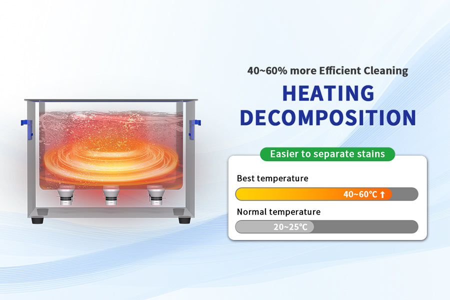 Heating can decrease the adhesive strength of oil and wax to stuffs to be cleaned, make the cleaning solution much easiler to create cavitation so as to increase the solution's cavitation level, and then enhance the cleaning effect.